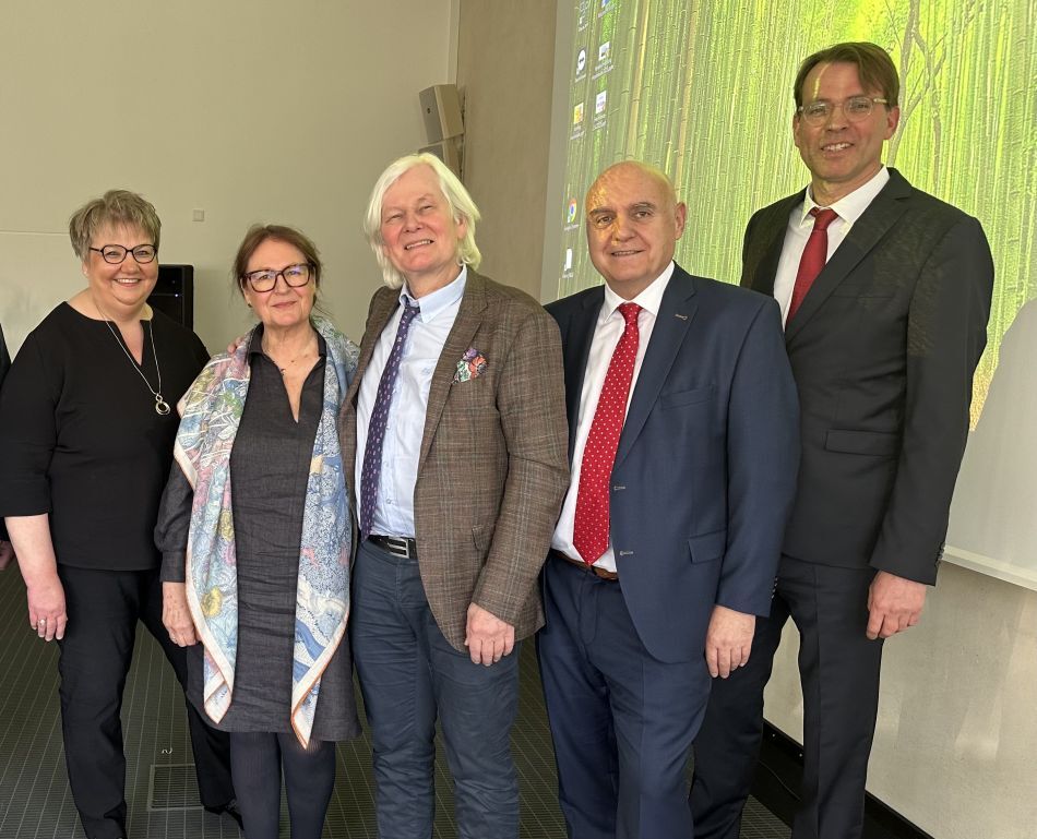 Foto (v.l.) Beate Mens, Pflegedienstleitung Fachklinik Hornheide, Barbara Schulze und PD Dr. Hans Joachim Schulze, Thomas Keck, Vorstandsvorsitzender der Fachklinik Hornheide und Hartmut Hagmann, Krankenhausdirektor der Fachklinik Hornheide.